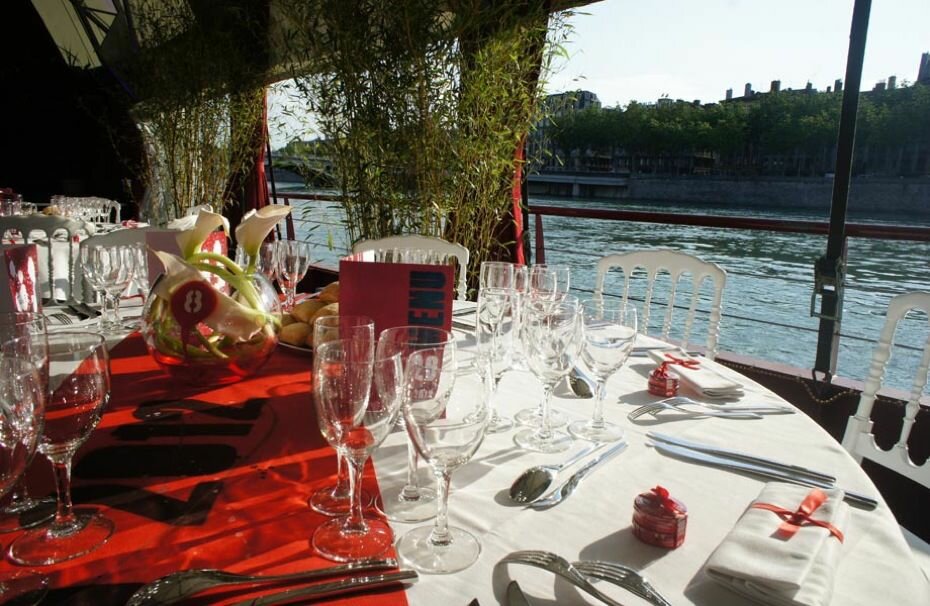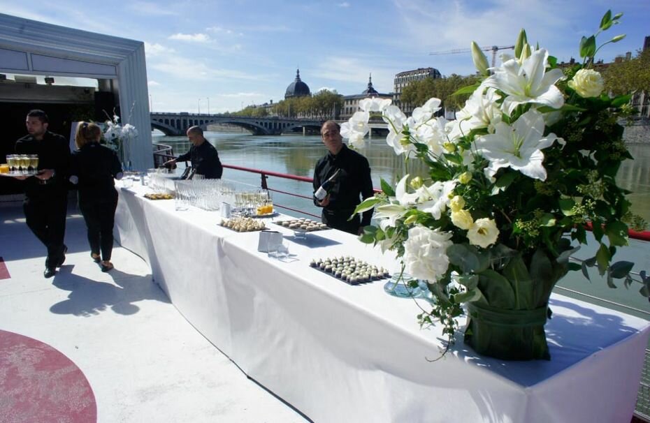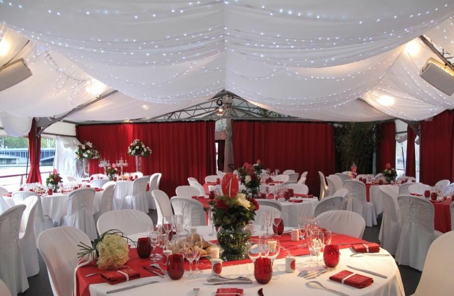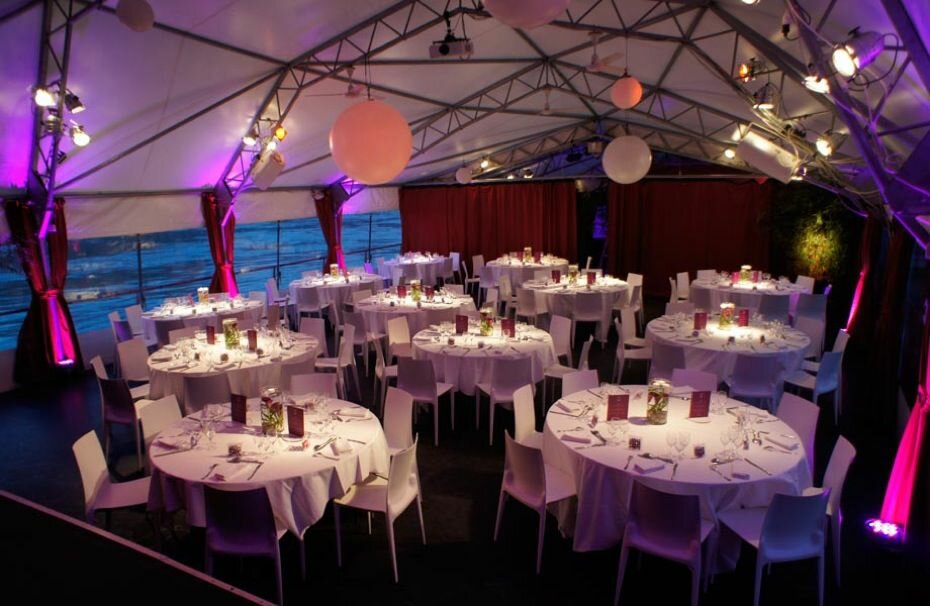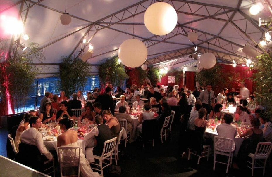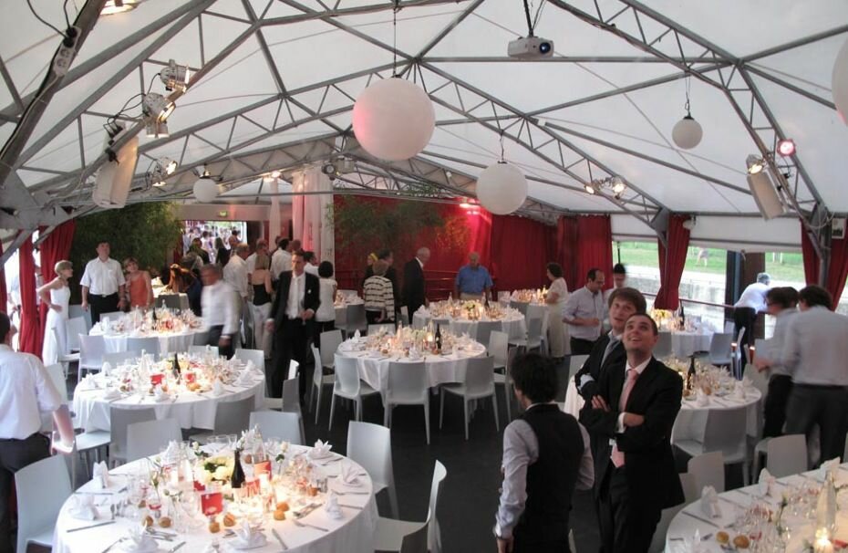 De par ses larges ouvertures latérales, le chapiteau offre une vue incomparable sur le Rhône et ses berges. Support remarquable pour les créations lumières et projections vidéos nocturnes, il est l’espace réceptif pour le repas (jusqu’à 150 convives à tables) ou le cocktail dînatoire (jusqu’à 300 invités). En proposant une atmosphère lumineuse et aérée, il donne un caractère exclusif à votre dîner de mariage.