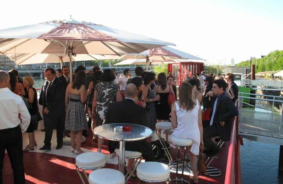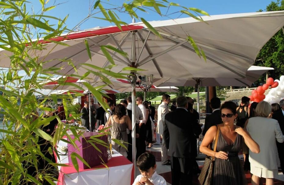 Pont-soleil sous les parasols, pont couvert transparent, le «deck» s’adapte aux saisons et aux intempéries. Véritable terrasse privée sur l’eau, cet espace de 110 m2 est parfait pour l’accueil du vin d’honneur, jusqu’à 160 invités.