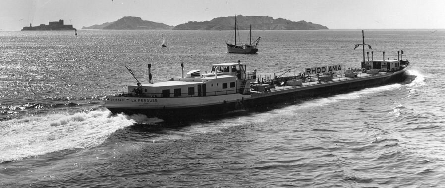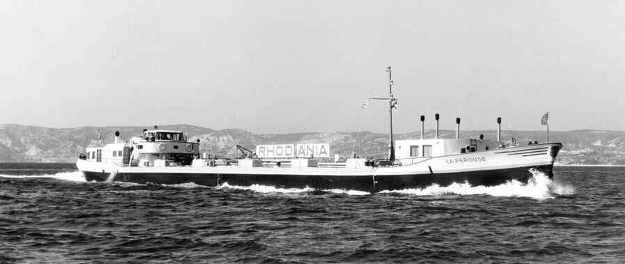 Pendant plus de 30 ans, le pétrolier La Pérouse a sillonné le fleuve capricieux jusqu’en Méditerranée. Surnommé “l’Amiral du Rhône”, le bateau a régulièrement nourri les récits dans le milieu des mariniers : avec sa capacité de chargement de 1046 tonnes d’hydrocarbures, il était, à son époque, le plus grand pétrolier fluvial de l’axe rhodanien. Ses deux moteurs Deutz cumulant 1000 chevaux, lui valurent le titre de bateau le plus rapide du Rhône pendant des années. Le galbe de sa coque attirait le regard des mariniers comme celui des profanes. «Les capitaines de Citerna (société concurrente de Rhodania) étaient un peu jaloux de cette flèche, mais on ne voyait pas longtemps son cul !», raconte Pierre M., matelot qualifié sur La Pérouse en 1966. Ses lignes, sa taille, et sa puissance on fait de ce pétrolier un bateau de légende.
