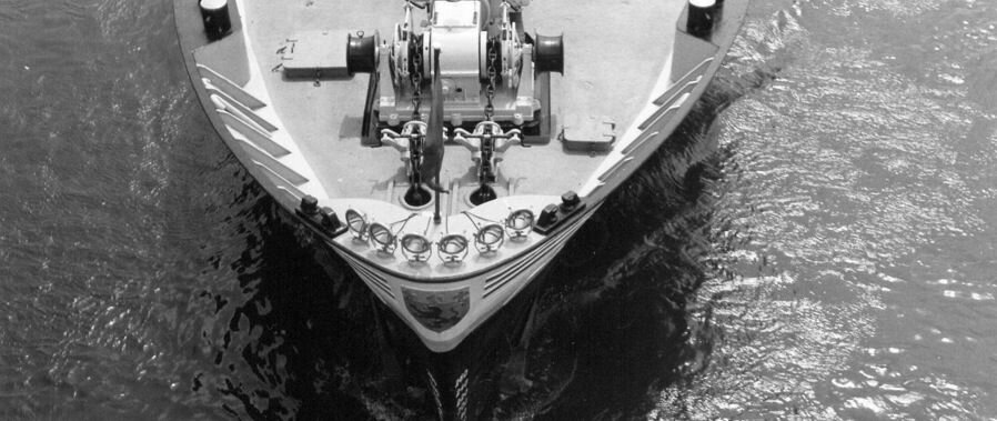 Direction : 5 gouvernails, qui, placés sur un certain angle avec un moteur en marche avant et l’autre en arrière, permettent un déplacement latéral sans moteur d’étrave.